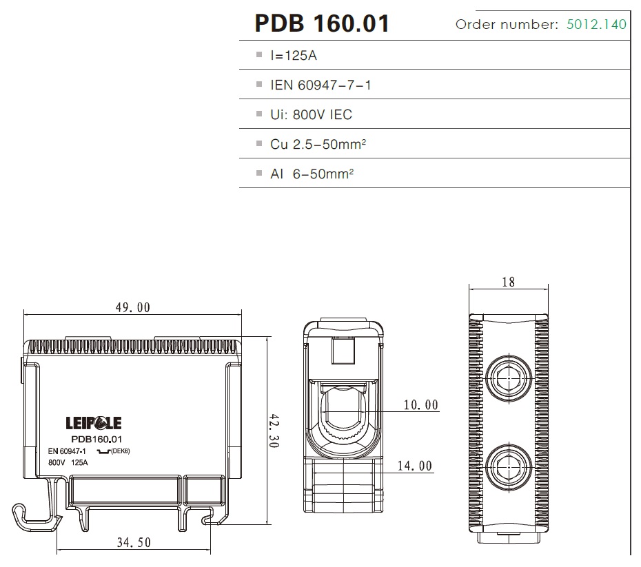 Seria listw zaciskowych PDB wykorzystywana jest w rozdzielnicach elektrycznych zasilających do podłączenia przewodów Cu i Al.